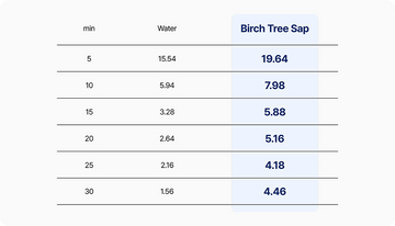 As demonstrated in the graph, Birch Tree sap is 2-3x more effective than water in maintaining moisture in our skin.